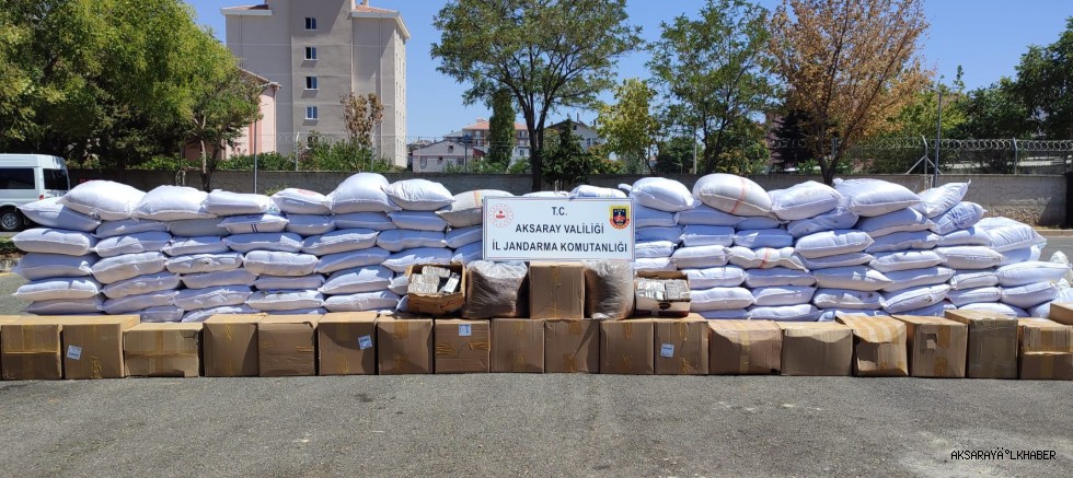 Aksaray Cumhuriyet Başsavcılığının talimatları doğrultusunda, Aksaray İl Jandarma Komutanlığına bağlı KOM Şube Müdürlüğü ve Taşpınar Jandarma Karakol Komutanlığı ekiplerince, Taşpınar Beldesi OSB Yol Kontrol Noktasında icra edilen denetim faaliyeti esnasında durdurulan bir tırın dorsesinde yapılan kontrollerde; (4.172) kg bandrolsüz kıyılmış tütün (Piyasa değeri yaklaşık 3.546.344 TL) (29.200) adet bandrolsüz doldurulmuş makaron (Piyasa değeri yaklaşık 87.600 TL) ele geçirilmiştir.